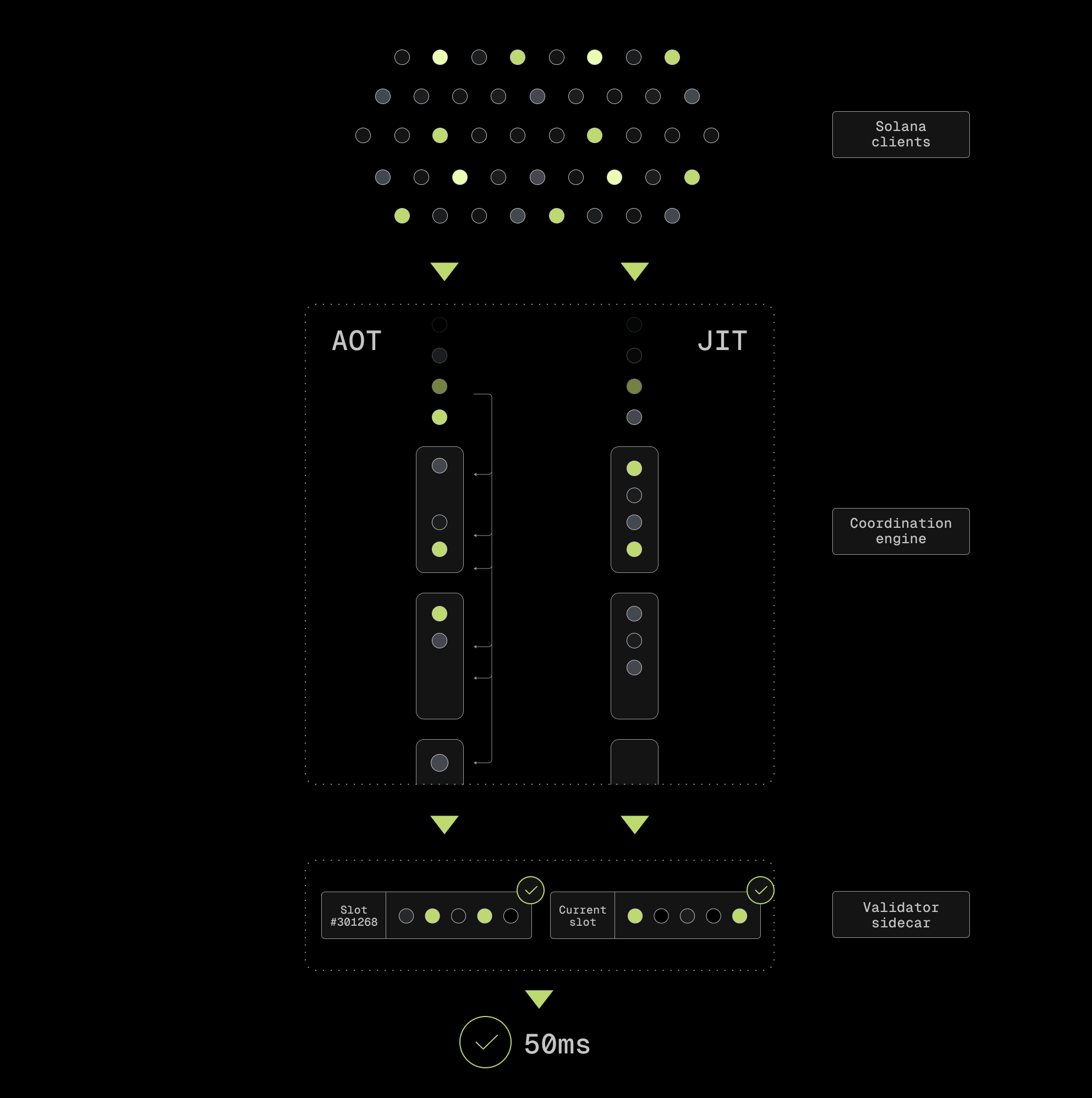 Raiku’s coordination engine delivers pre-confirmations while optimizing markets using the same trusted validators that support Solana today.