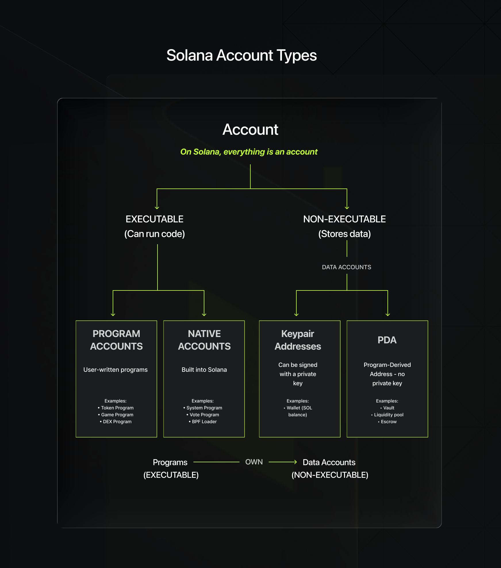 On Solana, everything is an account. Your wallet? An account. The Token Program? An account. Your game data? An account. Even the programs themselves? Accounts.