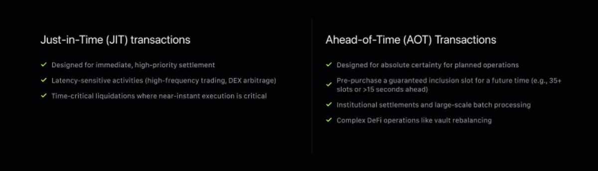 - Urgent rescue (JIT): “Include my liquidation save in the next slot with max bid b.” You know it will fire instantly.