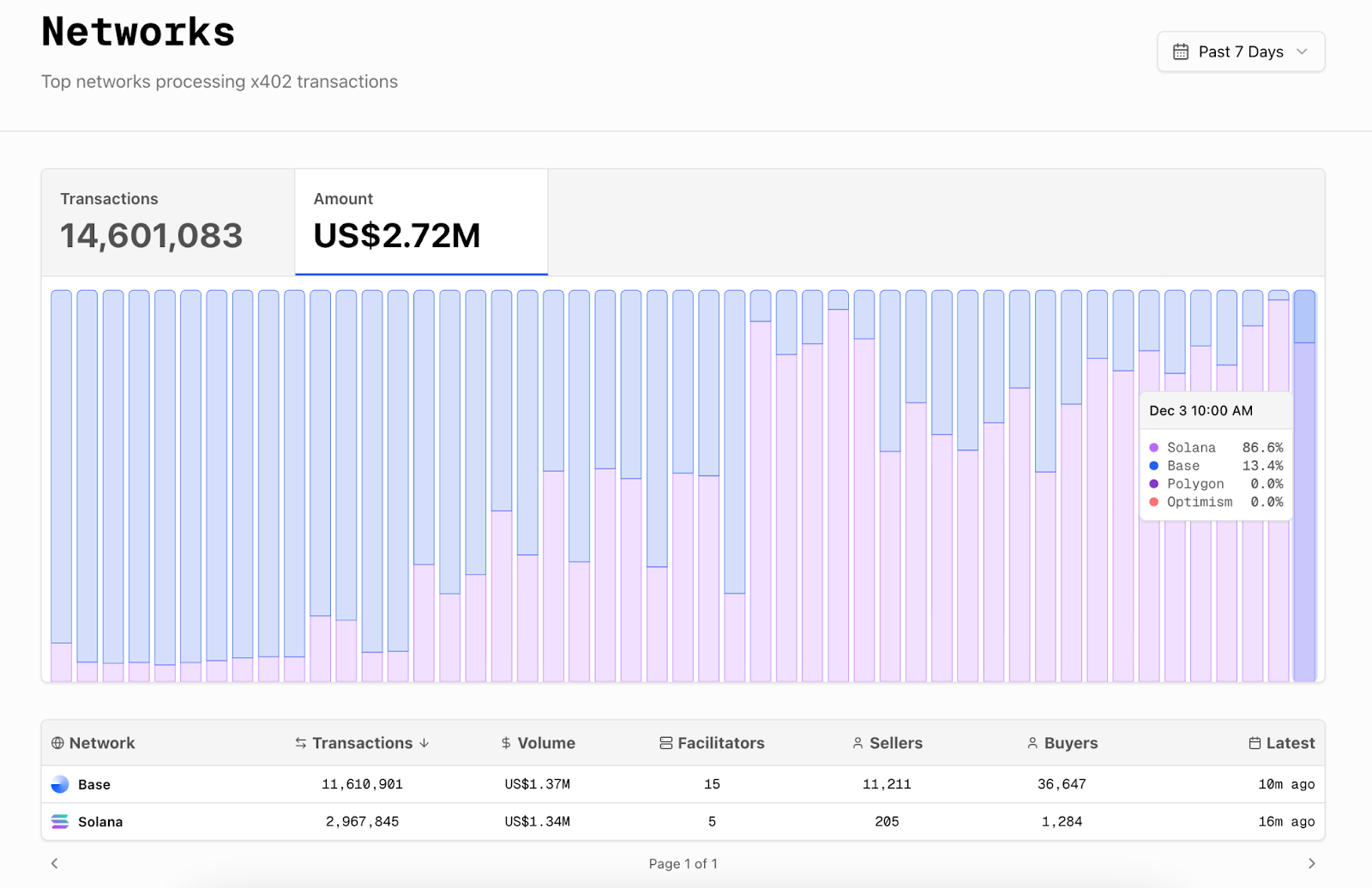 - X402 (an AI-native payment network) surged this week with Solana becoming the #1 network. Volumes rose 750% WoW, Solana flipped to lead in dollar volume, and hit an ATH $380K processed on 30 Nov.